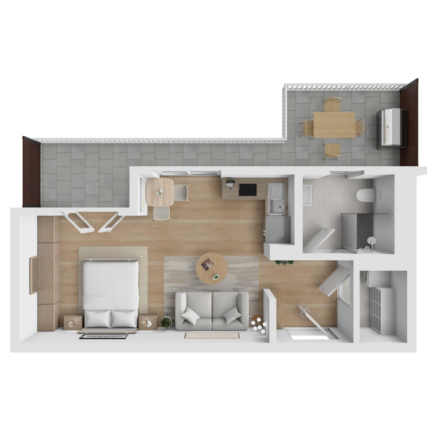 Abstellraum: Ein zusätzlicher Abstellraum mit 2,14 m² bietet Platz für persönliche Utensilien.