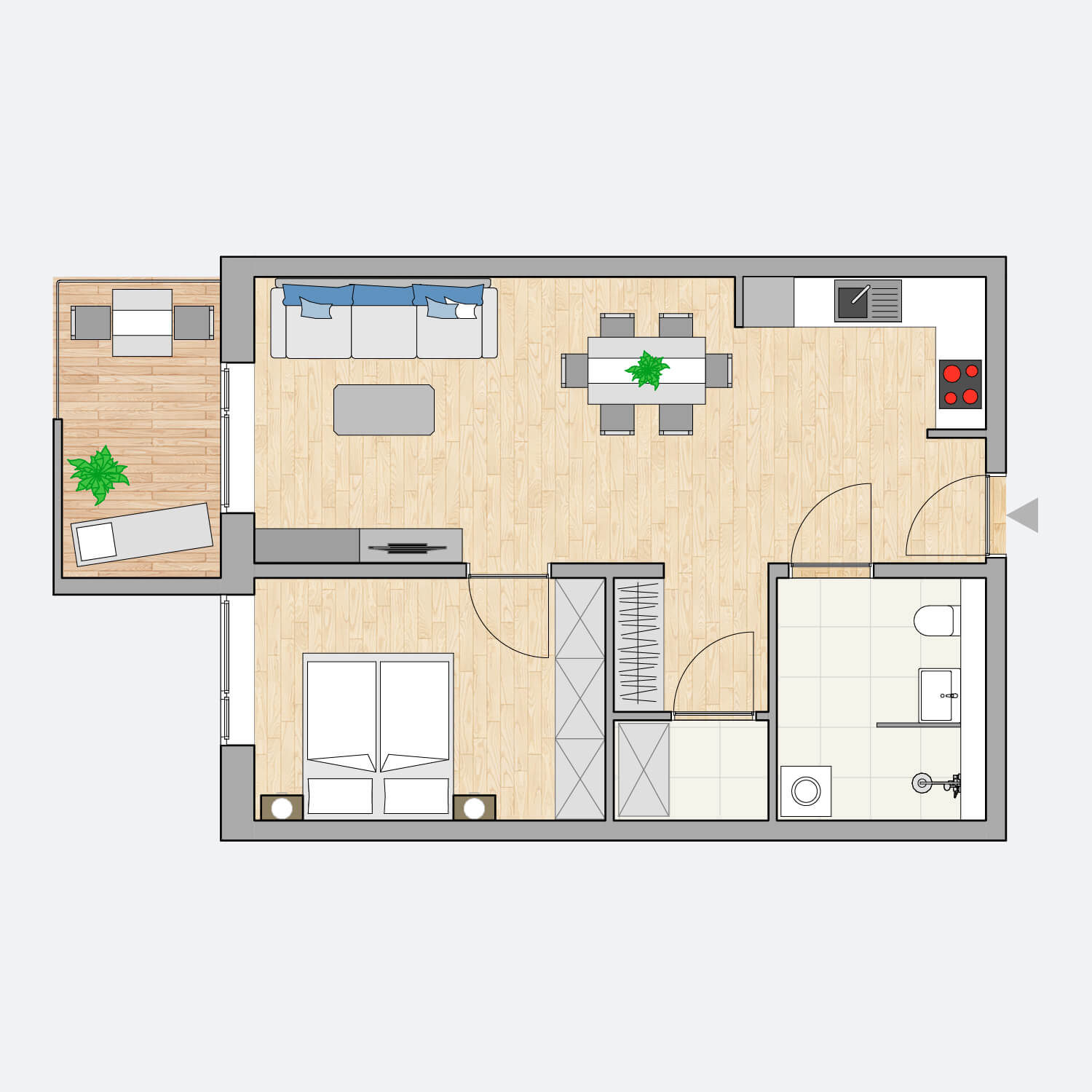 Insgesamt präsentiert sich die Wohnung als eine effiziente und zeitgemäße Wohneinheit, die sich besonders für Singles oder Paare eignet. Der offene Wohnbereich, der Balkon und die gut durchdachte Raumaufteilung tragen zu einem komfortablen und modernen Wohnkonzept bei.