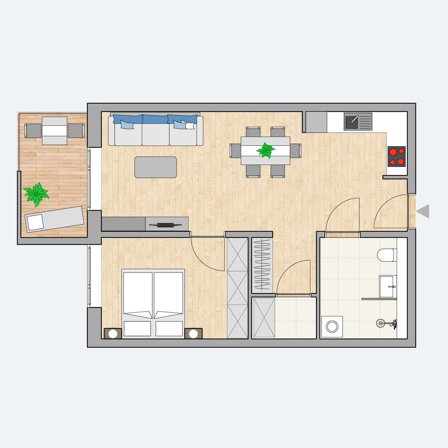 Abstellraum: Der Abstellraum mit 2,22 m² bietet zusätzlichen Stauraum.