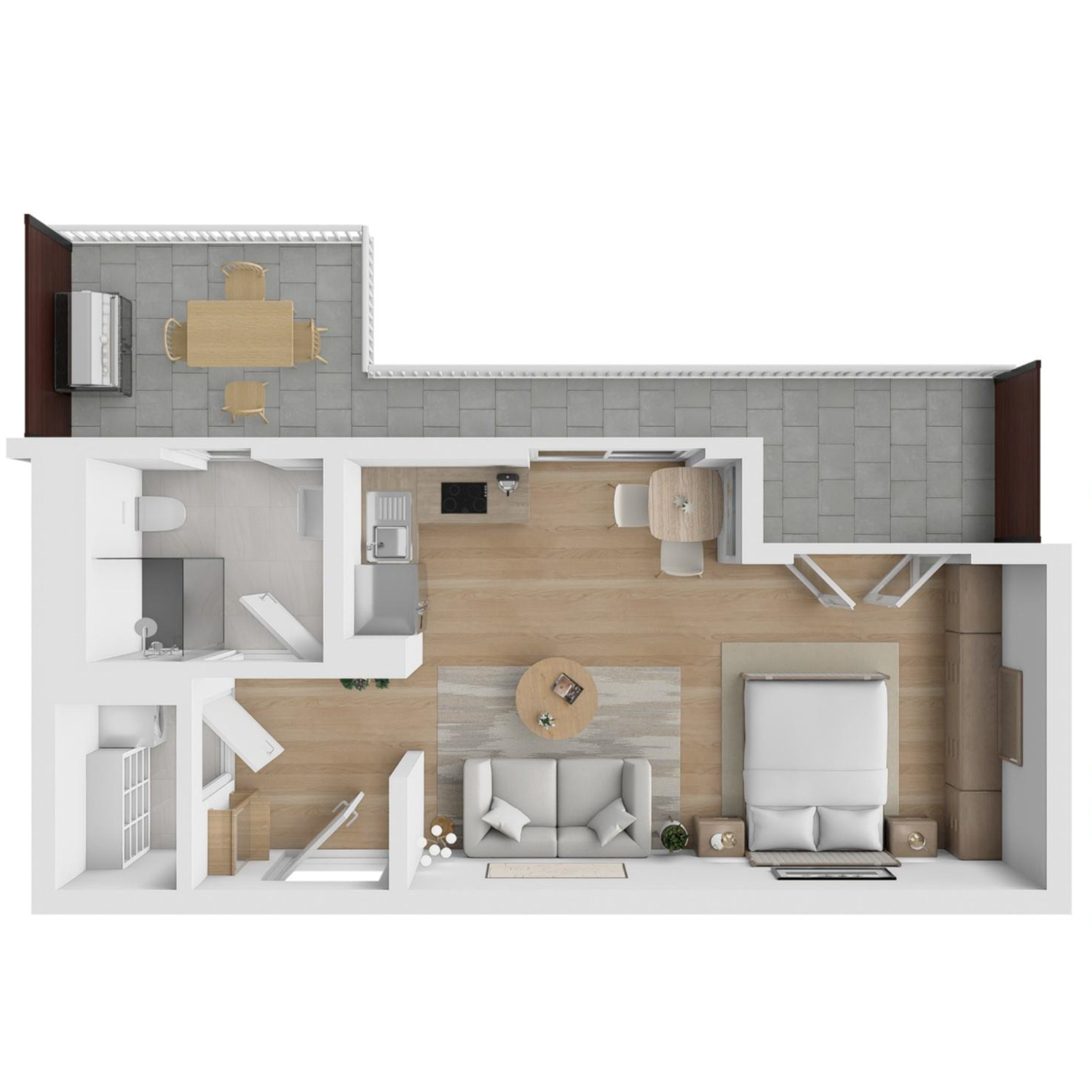Schlafen/Wohnen/Essen/Kochen (offener Bereich): Der offene Wohnbereich mit 24,82 m² bietet viel Raum für gemeinsame Aktivitäten.