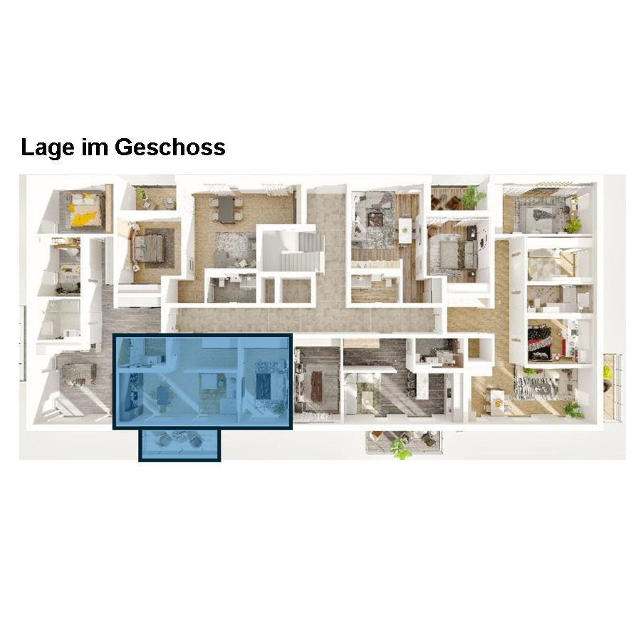 Die Wohnung (WE 8) besticht durch praktische Aufteilung. Die Wohnfläche beträgt 58,15 m².