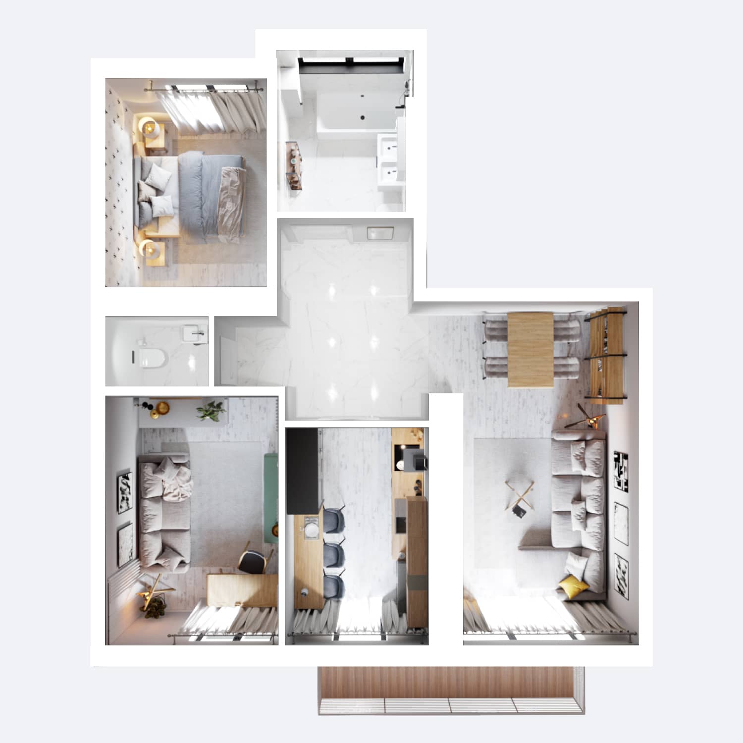 • Kind: 13,62 m2 • Kochen: 10,19 m2 • Flur: 11,26 m2 • Terrasse: 2,24 m2