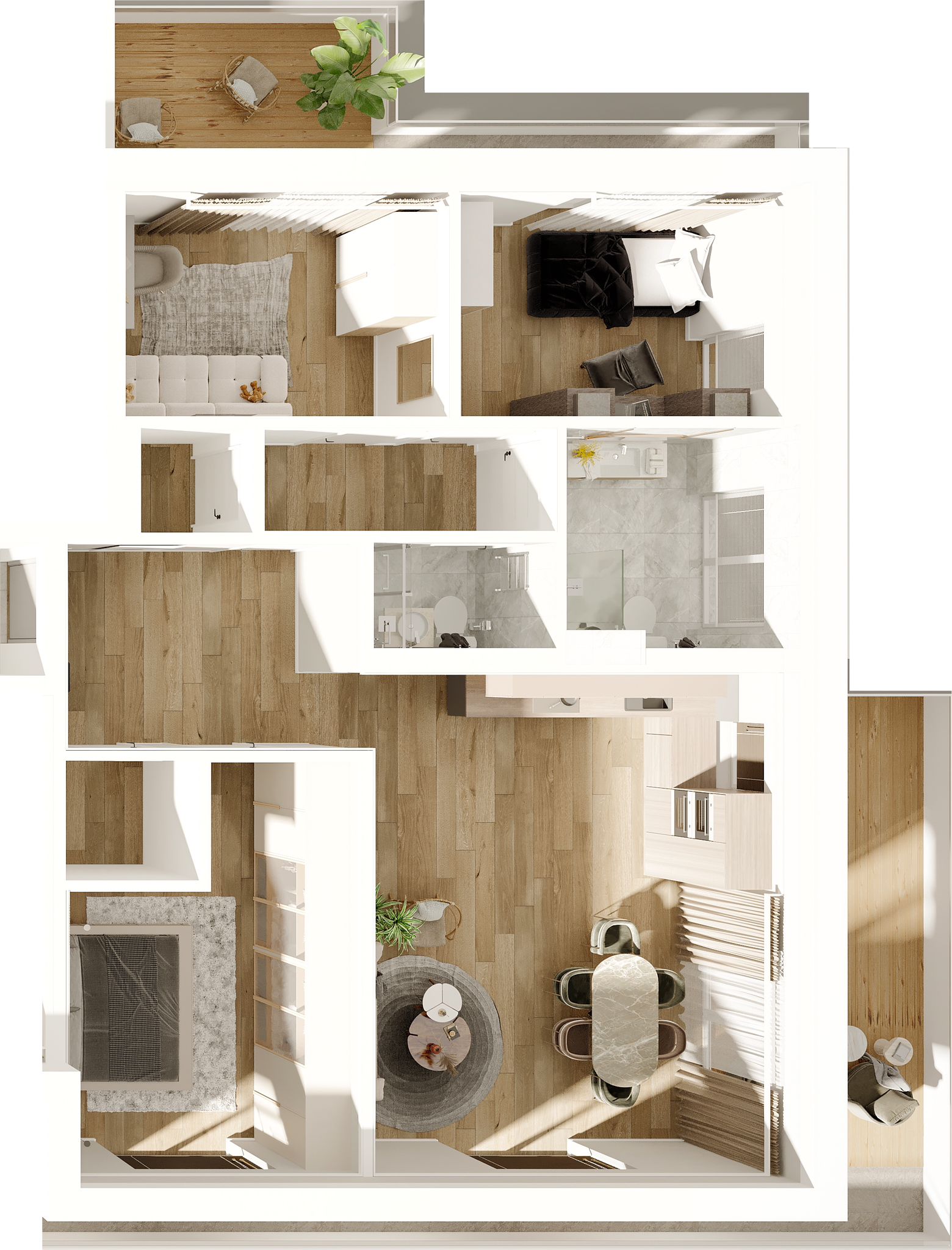 Mit 37 hochwertigen Eigentumswohnungen im KfW-40-Standard QNG (Qualitätssiegel Nachhaltiges Gebäude) erhalten Sie eine Vielfalt an modernen Wohnoptionen. Der Wohnungsmix umfasst 1- bis 4-Zimmer-Wohnungen mit Wohnflächen von 40 bis 114 m², die allesamt barrierearm gestaltet sind und über großzügige Balkone oder Terrassen verfügen. Dank der energieeffizienten Bauweise profitieren Sie von besonders niedrigen Nebenkosten sowie attraktiven steuerlichen Abschreibungsmöglichkeiten, die dieses Objekt auch für Kapitalanleger äußerst interessant machen.